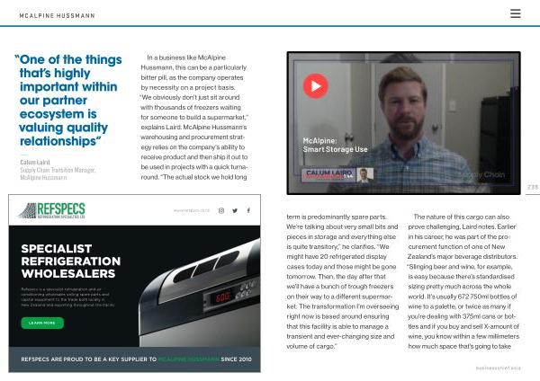 In a business like McAlpine Hussmann , this can be a particularly bitter pill , as the company operates by necessity on a project basis . “ We obviously don ’ t just sit around with thousands of freezers waiting for someone to build a supermarket ,” explains Laird . McAlpine Hussmann ’ s warehousing and procurement strategy relies on the company ’ s ability to receive product and then ship it out to be used in projects with a quick turnaround . “ The actual stock we hold long