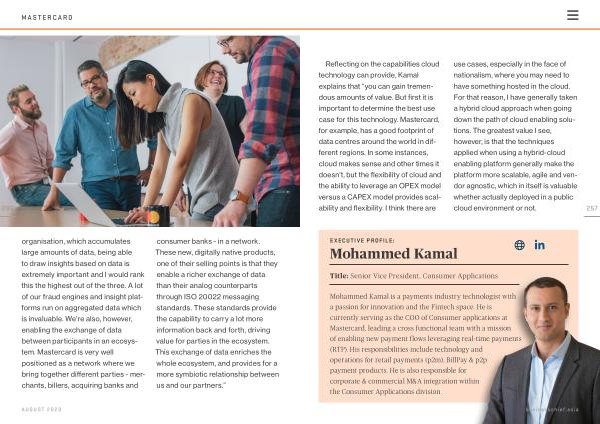Mohammed Kamal is a payments industry technologist with a passion for innovation and the Fintech space . He is currently serving as the COO of Consumer applications at Mastercard , leading a cross functional team with a mission of enabling new payment flows leveraging real-time payments ( RTP ). His responsibilities include technology and operations for retail payments ( p2m ), BillPay & p2p payment products . He is also responsible for corporate & commercial M & A integration within the Consumer Applications division . businesschief . asia
