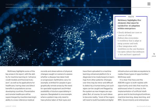 McKinsey highlights some of the key areas in its report , with the ability for machine learning to “ enhance credit models and financial inclusion ”, as well as its applications for healthcare , having clear and direct benefits to populations across developing countries . Preventative and remote healthcare will be supercharged by machine learning ’ s ability to cross-reference medical records and observations of physical changes caught on camera to assess whether a disease has taken hold or progressed . Ophthalmic care , for example , is limited for people in geographically remote areas by the need for specialist equipment and limited availability of doctors specialising in eyecare . Bangladesh is one example where a patient may only need to have photos taken of their eyes and