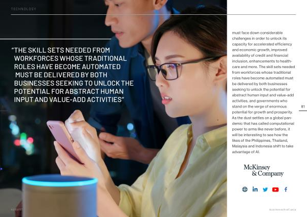 must face down considerable challenges in order to unlock its capacity for accelerated efficiency and economic growth , improved availability of credit and financial inclusion , enhancements to healthcare and more . The skill sets needed from workforces whose traditional roles have become automated must be delivered by both businesses seeking to unlock the potential for abstract human input and value-add activities , and governments who stand on the verge of enormous potential for growth and prosperity . As the dust settles on a global pandemic that has called computational power to arms like never before , it will be interesting to see how the likes of the Philippines , Thailand , Malaysia and Indonesia shift to take advantage of AI .