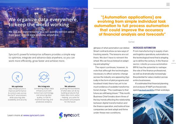 The report continues , however , to note that although the technologies necessary to effect seismic change across the industry are appearing ( typically in the form of pilot programs and localised trials ) there has yet to be much evidence of scalable transformational change . “ The roadmaps to that future are still being drawn .” This month , Business Chief breaks down three of the key trends affecting the relationship between digital transformation and the finance operation , and looks at how companies can best adapt and thrive under these new conditions .
