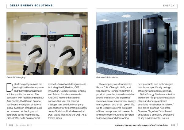 Delta Energy Systems is not just a global leader in power and thermal management solutions — it is the leader . The company , with facilities throughout Asia Pacific , the US and Europe , has been the recipient of several global awards in categories such as business , technology and corporate social responsibility . Since 2010 , Delta has received over 40 international design awards including the iF , Reddot , CES Innovation , Computex Best Choice and Taiwan Excellence awards . And 2012 marked the second consecutive year the thermal management solutions company was chosen for two prestigious Dow Jones Sustainability Indexes — the DJSI World Index and the DJSI Asia / Pacific Index .
