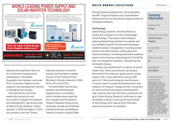 The Asia Pacific has been especially productive and successful in regards to research and development , garnering many of Delta Energy Systems ’ recent awards . In 2008 and again in 2012 , the company won the Taiwan