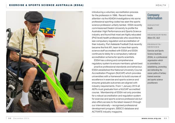 ESSA has a strong and comprehensive regulatory system to ensure members uphold best practice professional standards and behaviour . ESSA established the National University Course Accreditation Program ( NUCAP ) which provides universities with a framework to build courses of excellence in exercise and sports science and ensures graduate outcomes are aligned with industry requirements . From 1 January 2014 all AEPs must graduate from a NUCAP accredited course . Membership of ESSA not only provides for a robust accreditation and regulation system for exercise and sports science professionals but also offers access to the latest research through our internationally – recognised professional development program , EBSCO database and ACTIVATE industry magazine .