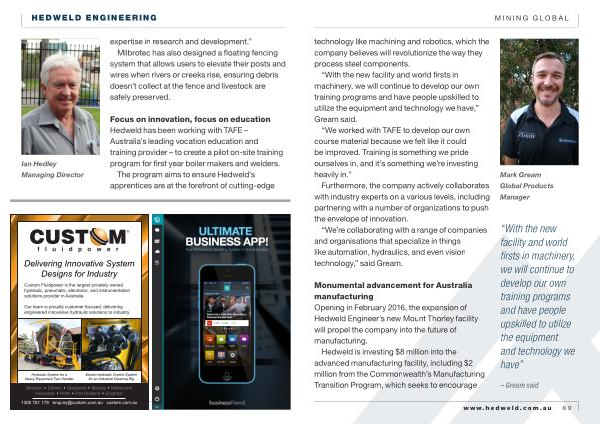 Monumental advancement for Australia manufacturing Opening in February 2016 , the expansion of Hedweld Engineer ’ s new Mount Thorley facility will propel the company into the future of manufacturing .