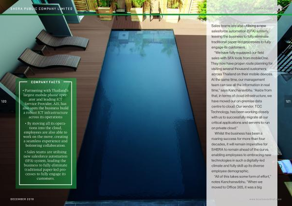 “ We have fully equipped our field sales with SFA tools from mobileOne . They now have proper route planning for visiting several thousand customers across Thailand on their mobile devices . At the same time , our management team can see all the information in real time ,” says Kanchanavibhu . “ Aside from that , in terms of cloud infrastructure , we have moved our on-premise data centre to cloud . Our vendor , TCC Technology , has been working closely with us to successfully migrate all our critical applications and servers to run on private cloud .”
