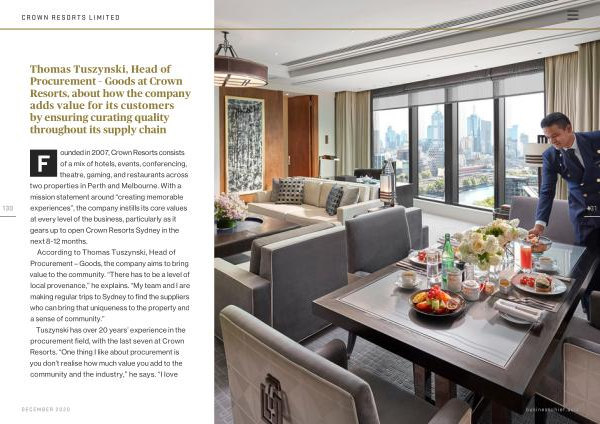 Thomas Tuszynski , Head of Procurement – Goods at Crown Resorts , about how the company adds value for its customers by ensuring curating quality throughout its supply chain