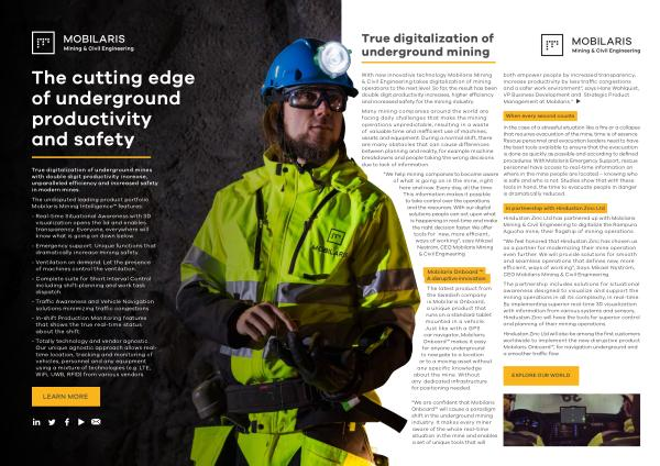With new innovative technology Mobilaris Mining & Civil Engineering takes digitalization of mining operations to the next level . So far , the result has been double digit productivity increases , higher efficiency and increased safety for the mining industry .