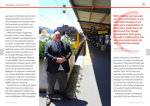 215 system , antiquated overhead line structures , and single to double tracking projects . “ We ’ re going through a big upgrade project on our network , led by our key partners KiwiRail and GWRC ,” explains Tulitt . “ As the network is upgraded , we ’ re making sure we push out more information to our staff while bringing in our third-party stakeholders to brief them , build that trust , and to make sure the change management we ’ re going through is softened and staff are well informed .”