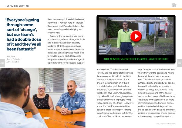 — Mike Dunn Head of Technology Activ Foundation the role came up it ticked all the boxes ,” he recalls . “ I ’ ve been here for the last three years and it ’ s probably been the most rewarding and challenging job I ’ ve ever had .”