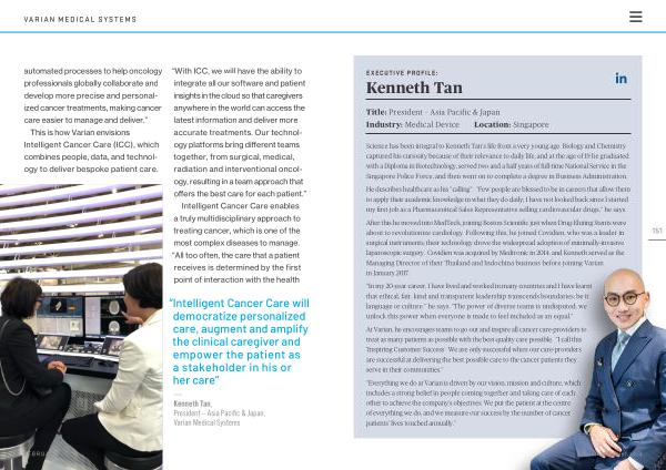 “ Everything we do at Varian is driven by our vision , mission and culture , which includes a strong belief in people coming together and taking care of each other to achieve the company ’ s objectives . We put the patient at the centre of everything we do , and we measure our success by the number of cancer patients ’ lives touched annually .” businesschief . asia