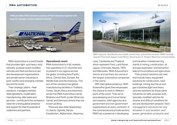 With their global presence , RMA Automotive gives their employees the chance to work in different parts of the world . They serve peacekeeping and humanitarian aid missions , relief agencies and government and non-government organisations on every continent . In the commercial and private sectors , RMA has a presence in developing