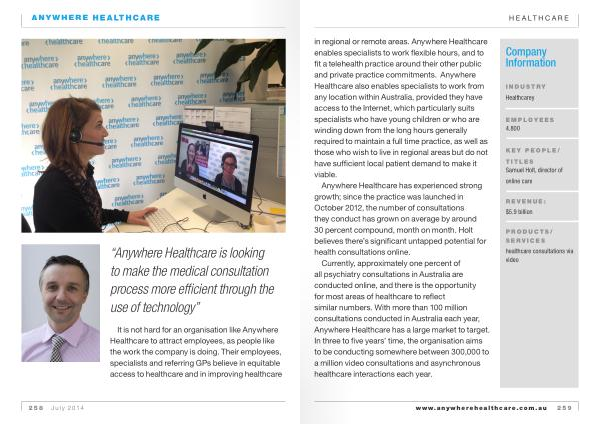 Anywhere Healthcare has experienced strong growth ; since the practice was launched in October 2012 , the number of consultations they conduct has grown on average by around 30 percent compound , month on month . Holt believes there ’ s significant untapped potential for health consultations online .