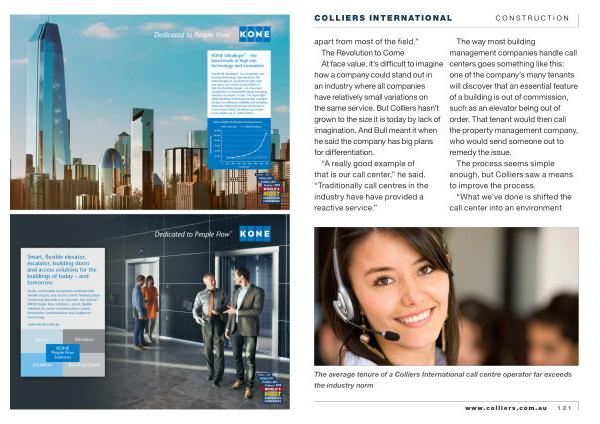 CONSTRUCTION apart from most of the field .” The Revolution to Come At face value , it ’ s difficult to imagine how a company could stand out in an industry where all companies have relatively small variations on the same service . But Colliers hasn ’ t grown to the size it is today by lack of imagination . And Bull meant it when he said the company has big plans for differentiation .