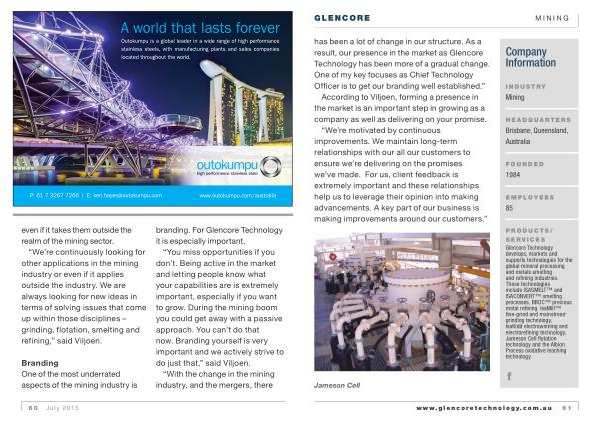has been a lot of change in our structure . As a result , our presence in the market as Glencore Technology has been more of a gradual change . One of my key focuses as Chief Technology Officer is to get our branding well established .” According to Viljoen , forming a presence in the market is an important step in growing as a company as well as delivering on your promise .