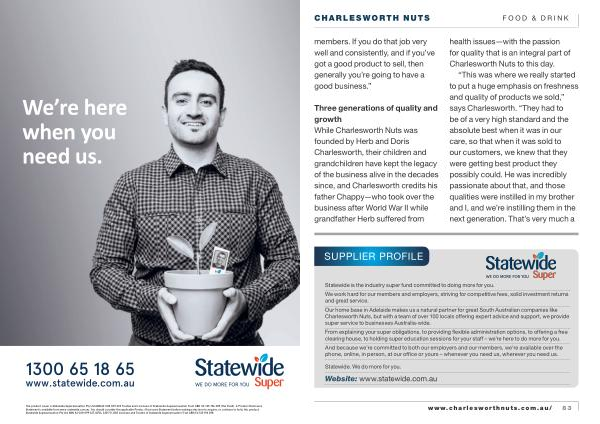 Our home base in Adelaide makes us a natural partner for great South Australian companies like Charlesworth Nuts , but with a team of over 100 locals offering expert advice and support , we provide super service to businesses Australia-wide .