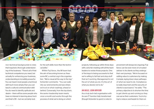 As a truly tech-led organisation with its own IT function fully transformed ( though Schembri is quick to note im- provement will always be ongoing ), Fuji Xerox can be even more of a trusted advisor to its clients as they undergo their own journeys . “ We ’ re focused on adding value to customers by making it simple , laying down clear pathways of what we need to do . Compliance is really important and the security of clients is sacrosanct ,” he adds . “ The primary objective is to shorten the time to get clients up and running so they can serve their customers . You ’ re trying to reduce overheads for them on