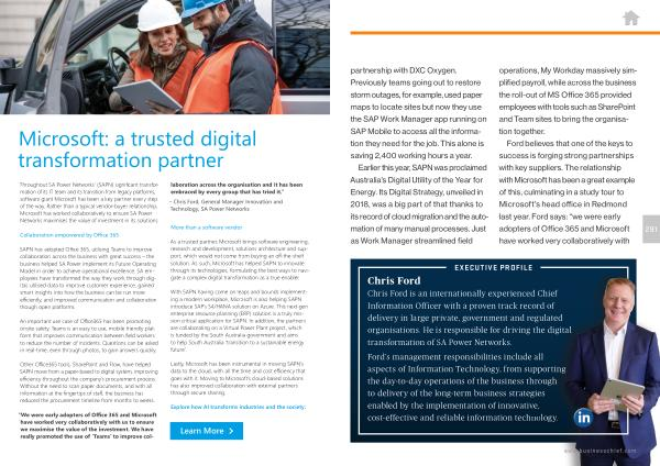 Throughout SA Power Networks ’ ( SAPN ) significant transformation of its IT team and its transition from legacy platforms , software giant Microsoft has been a key partner every step of the way . Rather than a typical vendor-buyer relationship , Microsoft has worked collaboratively to ensure SA Power Networks maximises the value of investment in its solutions .
