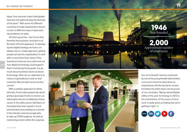 303 tion , he is himself ‘ reverse-mentored ’ by one of his young female field workers , a process which he describes as inspirational . All this has led to a transformation his entire team can be proud of , he concludes . “ Being named Digital Utility of the year for Energy in 2019 is the culmination of five years of hard work : it really gives us feeling that we ’ re getting it right .”