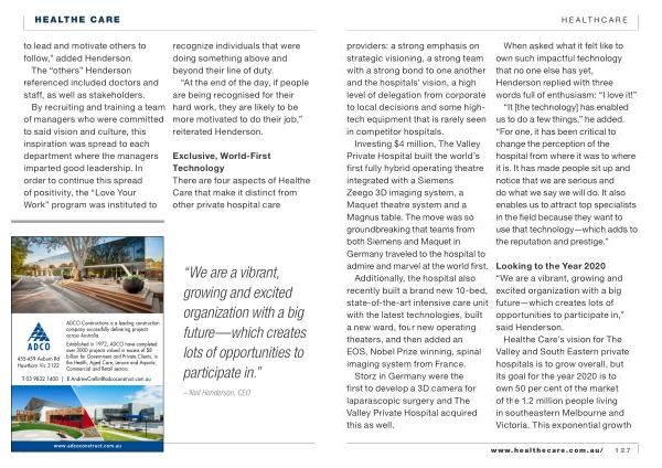 Exclusive , World-First Technology There are four aspects of Healthe Care that make it distinct from other private hospital care
