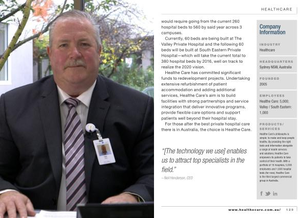 PRODUCTS / SERVICES Healthe Care ’ s philosophy is simple : to make and keep people healthy . By providing the right tools and information alongside a range of health services and solutions , Healthe Care empowers its patients to take control of their health . With a portfolio of 16 hospitals , 5,000 employees and 1,600 hospital beds ( for now ), Healthe Care is the third largest commercial group in Australia .
