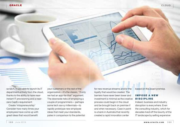 CLOUD for new revenue streams and / or the loyalty that would be created . The barriers have never been lower and investment is minimal as the creative process could begin in the cloud and be brought back on premise if and when necessary . Case in point is a bank in Australia that recently created a rapid innovation center based on this exact premise .
