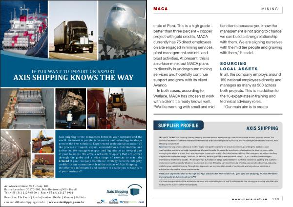 P . S .: Axis is responsible of the whole international and national logistic of MACA ´ s shipments . Our strong partnership with MACA is leading to the success of all their projects . www . maca . net . au 195