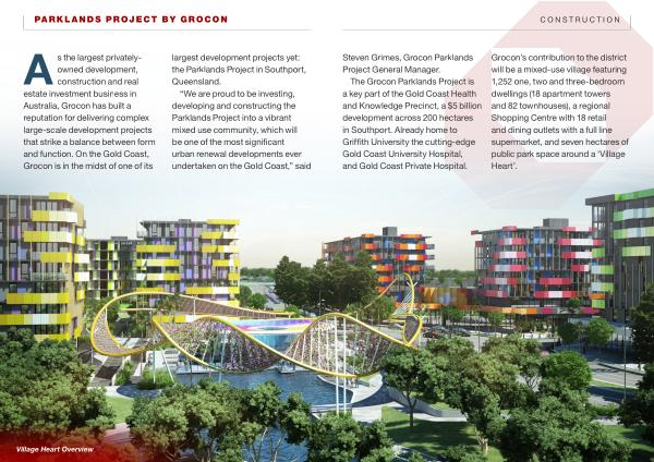 The Grocon Parklands Project is a key part of the Gold Coast Health and Knowledge Precinct , a $ 5 billion development across 200 hectares in Southport . Already home to Griffith University the cutting-edge Gold Coast University Hospital , and Gold Coast Private Hospital .