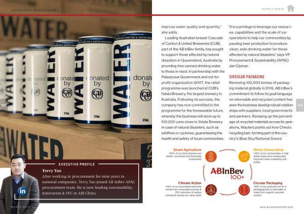 Leading Australian brewer Cascade of Carlton & United Breweries ( CUB ), part of the AB InBev family , has sought to support those affected by natural disasters in Queensland , Australia by providing free canned drinking water to those in need . In partnership with the Palaszczuk Government and not-forprofit organisation GIVIT , the relief programme was launched at CUB ’ s Yatala Brewery , the largest brewery in Australia . Following its success , the company has now committed to the programme for the foreseeable future , whereby the business will store up to 100,000 cans close to Yatala Brewery in case of natural disasters , such as wildfires or cyclones , guaranteeing the health and safety of local communities .