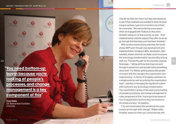 With vendors and products selected , the fourth phase NHF went though was development and implementation , bringing in BAs , developers , data scientist , testers and even an Agile coach to ensure the technology transformation ran smoothly among staff , too . This laid the path for the currently ongoing final stage – “ taking all those learnings we went through in phase four and actually doing something about that .” For Riddle , getting passionate people on board with the changes the organisation was experiencing – in terms of bringing customers to a single point as well as unifying the organisation itself – was key in managing the significant culture shift involved in any technology transformation . “ You need bottom-up buy-in because you ’ re looking at people ’ s processes , and change management is a key component of this . You ’ ve got to be aware of how it impacts them and how they are involved in the whole process ,” he explains .
