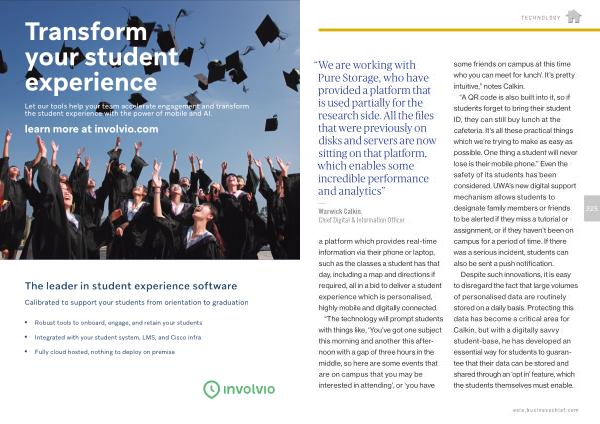“ A QR code is also built into it , so if students forget to bring their student ID , they can still buy lunch at the cafeteria . It ’ s all these practical things which we ’ re trying to make as easy as possible . One thing a student will never lose is their mobile phone .” Even the safety of its students has been considered . UWA ’ s new digital support mechanism allows students to designate family members or friends to be alerted if they miss a tutorial or assignment , or if they haven ’ t been on campus for a period of time . If there was a serious incident , students can also be sent a push notification .