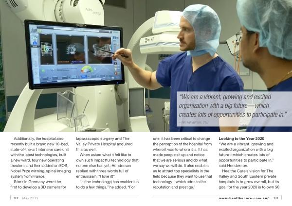 Healthe Care ’ s vision for The Valley and South Eastern private hospitals is to grow overall , but its goal for the year 2020 is to own 50