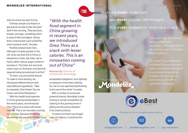 acceptable indulgence , and rightfully so because of the lower calories . So , we ’ ve now exported that thinking to the rest of the world ,” he adds . With a number of renowned , powerful brands , Mondelēz is also looking to remain competitive by catering to the growing trend of gifting and the personalisation of its snack products .