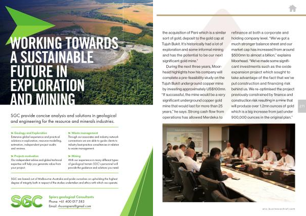 During the next three years , Moorhead highlights how his company will complete a pre-feasibility study on the Tujuh Bukit underground copper mine by investing approximately US $ 100mn . “ If successful , the mine would be a very significant underground copper gold mine that would last for more than 25 years ,” he says . Strong cash flow from operations has allowed Merdeka to refinance at both a corporate and holding company level . “ We ’ ve got a much stronger balance sheet and our market cap has increased from around $ 500mn to almost a billion ,” explains Moorhead . “ We ’ ve made some significant investments such as the oxide expansion project which sought to take advantage of the fact that we ’ ve put construction and financing risk behind us . We re-optimised the project previously constrained by finance and construction risk resulting in a mine that will produce over 1.2mn ounces of gold which is a big increase from just under 900,000 ounces in the original plan .”