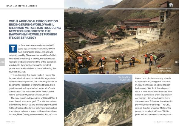 The China Pit at Bawdwin Mine tinues Lamb . As the company intends to become a major regional producer in Asia , the mine seemed like the perfect project . “ We think there is good value in Myanmar and in this mine . The nation is completely under-explored , in our opinion – the opportunities there are enormous . This mine , therefore , fits perfectly into our strategy .” The CEO reveals that , for Myanmar Metals , this project is hugely significant : “ At this point we ’ re a one asset company – we
