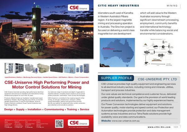 Our core values are technical competence and customer focus , delivered under global quality standards . Our goal is the provision of world leading products and solutions , implemented by our highly experienced teams . Our Power Conversion technologies deliver equipment and solutions for power quality , motor starting and speed control ; our Protection and Automation technologies provide protection and data management systems across industries and our Tetra Radio solutions provide high availability voice and data communications . Website : www . cse-uniserve . com . au