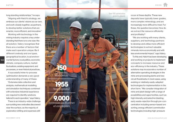 To this end , Hatch has been developing and working on projects to implement concepts to increase resource and eco-efficiency in the industry . These solutions may incorporate a number of alternative operating strategies in the mine and processing plants and new circuit flowsheets ; in most cases , using existing or relatively easily-adapted technologies for implementation in the short term . “ We consider integration of mine and plant design with a range of possibilities and opportunities , such as high intensity and selective blasting ; early waste-rejection through pre-concentration including sensor-based ore sorting ; energy efficient comminution technologies including high-pressure