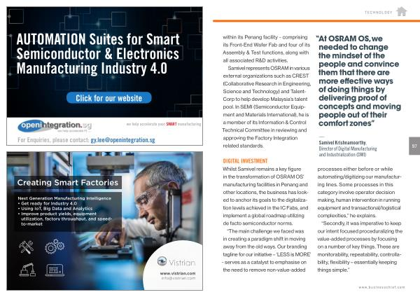 Whilst Samivel remains a key figure in the transformation of OSRAM OS ’ manufacturing facilities in Penang and other locations , the business has looked to anchor its goals to the digitalization levels achieved in the IC Fabs , and implement a global roadmap utilizing de facto semiconductor norms .