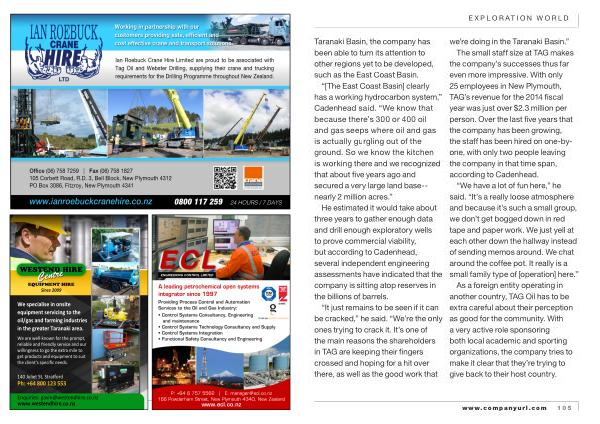 Ian Roebuck Crane Hire Limited are proud to be associated with Tag Oil and Webster Drilling , supplying their crane and trucking requirements for the Drilling Programme throughout New Zealand .