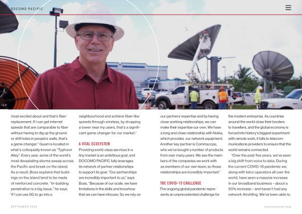 164 most excited about and that ’ s fiber replacement . If I can get internet speeds that are comparable to fiber without having to dig up the ground or drill holes in people ’ s walls , that ’ s a game changer .” Guam is located in what ’ s colloquially known as “ Typhoon Alley ”. Every year , some of the world ’ s most devastating storms sweep across the Pacific and break on the island . As a result , Boss explains that buildings on the island tend to be made of reinforced concrete . “ In-building penetration is a big issue ,” he says . “ If I can use 5G to go into a neighbourhood and achieve fiber-like speeds through wireless , by dropping a tower near my users , that ’ s a significant game changer for our market .”