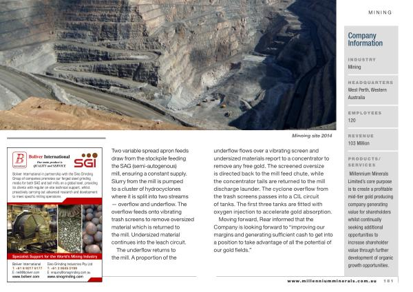 underflow flows over a vibrating screen and undersized materials report to a concentrator to remove any free gold . The screened oversize is directed back to the mill feed chute , while the concentrator tails are returned to the mill discharge launder . The cyclone overflow from the trash screens passes into a CIL circuit of tanks . The first three tanks are fitted with oxygen injection to accelerate gold absorption .
