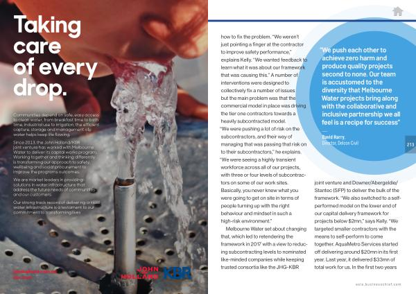 Since 2013 , the John Holland / KBR joint venture has worked with Melbourne Water to deliver its capital works program . Working together and thinking differently is transforming our approach to safety , wellbeing and social procurement to improve the programs outcomes .