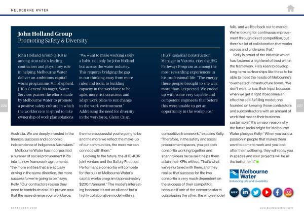 Kelly is proud of the initiative which has fostered a high level of trust within the framework . He ’ s keen to develop long-term partnerships like these to be able to meet the needs of Melbourne ’ s “ overheated ” infrastructure boom . “ We don ’ t want to lose their input because when we get it right it becomes an effective self-fulfilling model ; one founded on keeping those contractors and subcontractors with an amount of work that makes their business sustainable .” It ’ s a major reason why the future looks bright for Melbourne Water pledges Kelly : “ When you build a passion in people that makes them want to come to work and you look after their wellbeing , they will repay you in spades and your projects will be all the better for it .”