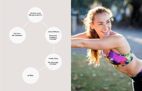 Caroline Lucey Managing director Jenna McManus Part time web developer Brand and marketing manager Amelia Shaw The Active App manager INTERN 58 59