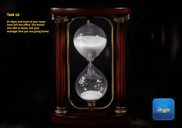 It's 6pm and most of your team have left the office. You would also like to leave, tell your manager that you are going home.