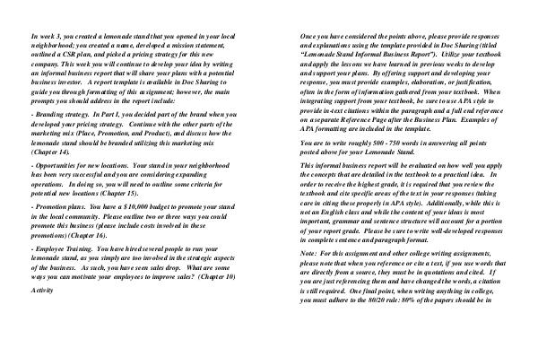company. This week you will continue to develop your idea by writing