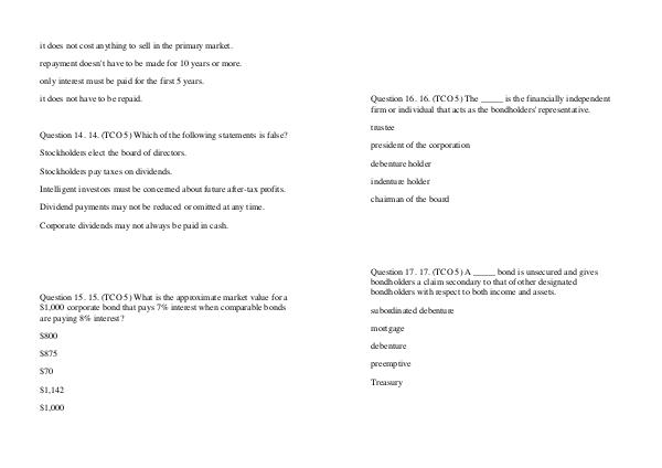 Question 15. 15. (TCO 5) What is the approximate market value for a