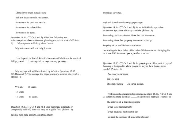 7) Estate planning involves _____ if a person is married. (Points : 1)