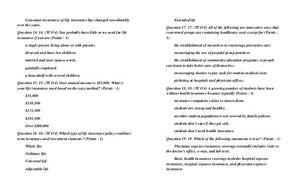 Question 15. 15.( TCO 4) Your annual income is $ 35,000. What is your life insurance need based on the easy method?( Points: 1)