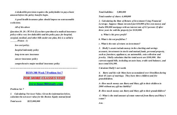 BUSN 380 Week 7 Problem Set 7 FOR MORE CLASSES VISIT www. busn380study. com